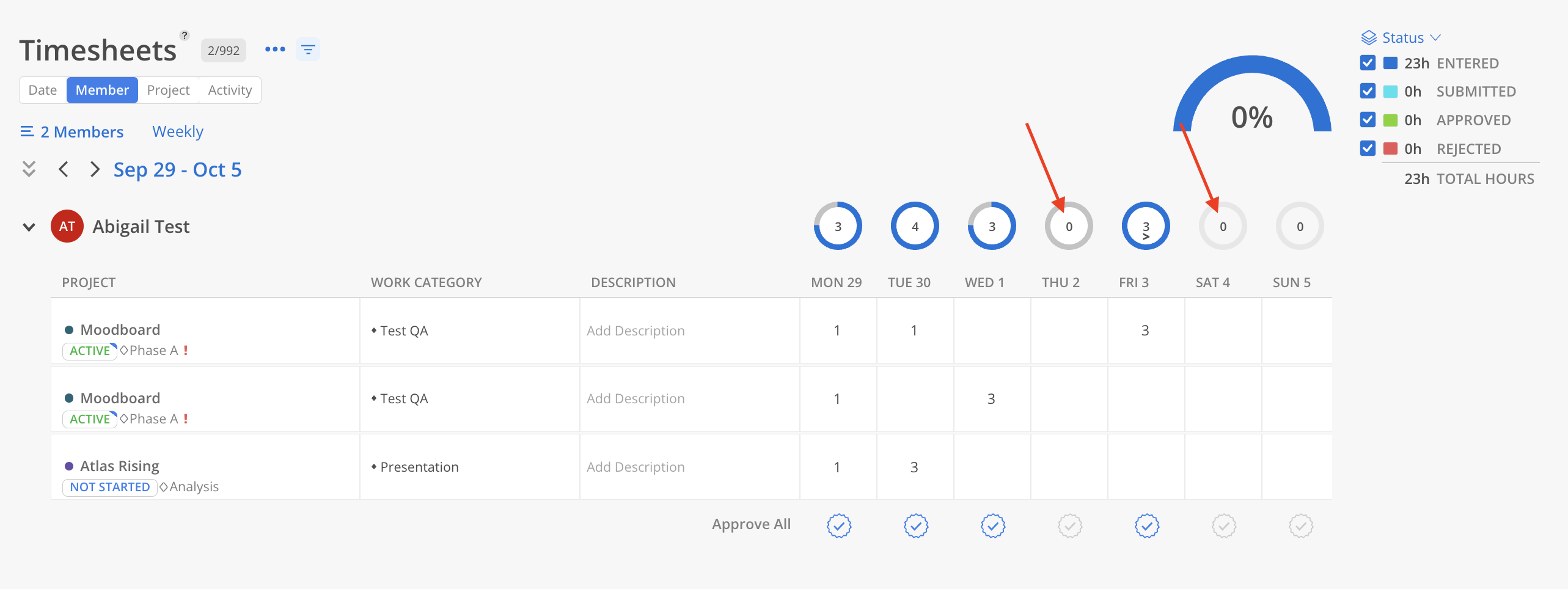 To approve all Timesheet for the Member for the week, click the Approve All button.