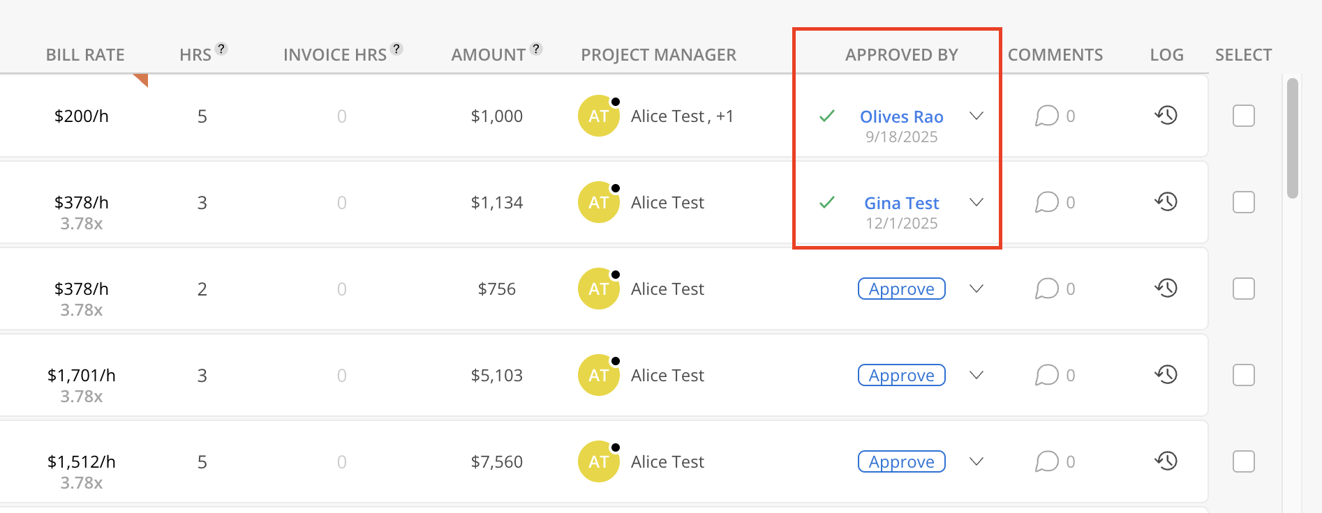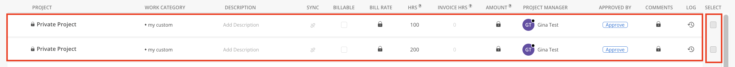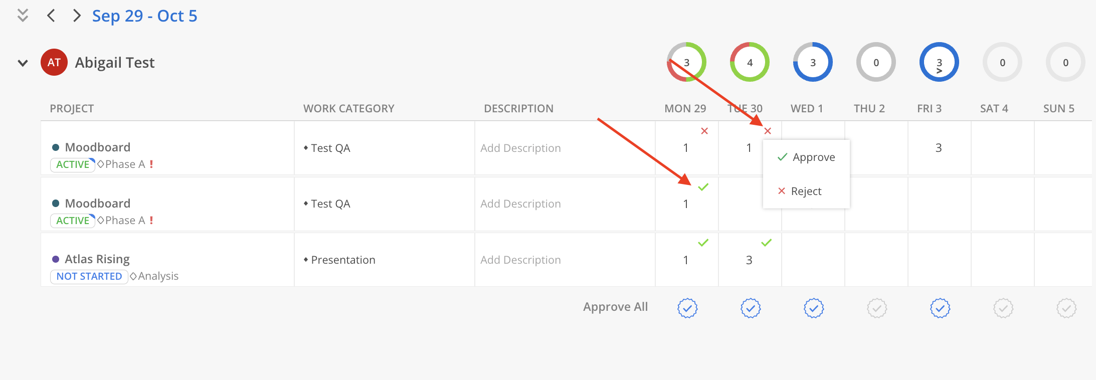 Clear Approval/Rejection: Remove the approved or rejected status on selected time entries.