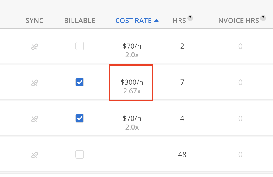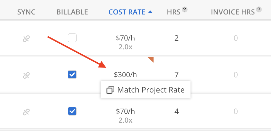 Reset Rate: Make the rate(s) of the time entries match default project rate.