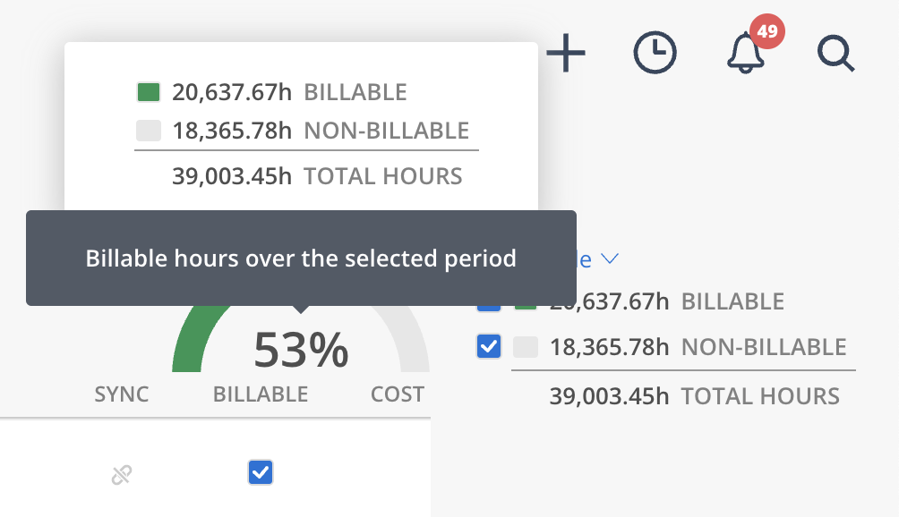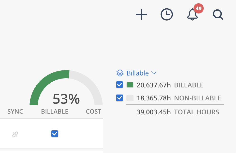 If no checkboxes are selected or only Non-Billable is checked, the displayed percentage is 0%.