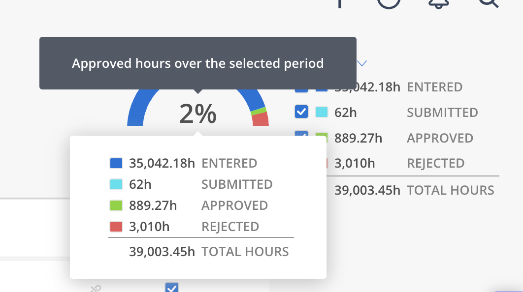 Tooltip appears when hovering over the percentage and displays only the selected status categories.