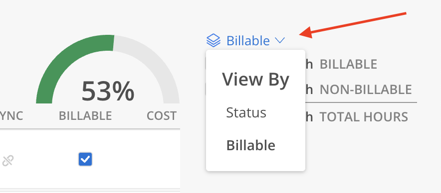 Use the dropdown in the top of the chart to switch between Status View and Billable View.