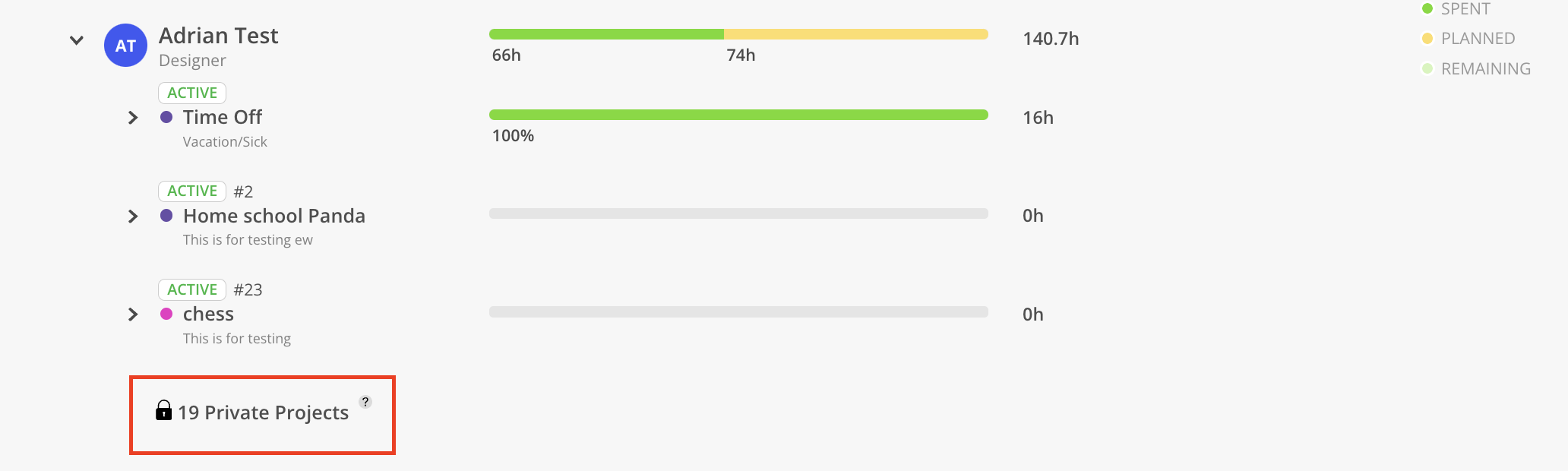 Projects without access permissions will be consolidated into a single row labeled "Private Projects" with the total count displayed. Bar and number will not be shown for this row.