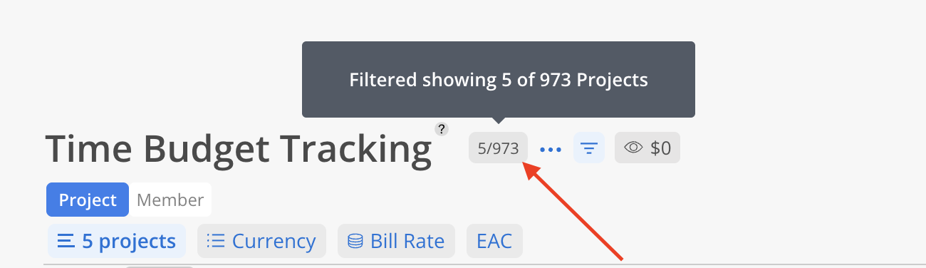 Next to the Report title, the number of filtered Projects is displayed alongside the total count.