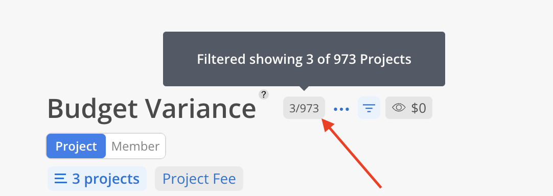 Next to the Report title, the number of filtered Projects is displayed alongside the total count.