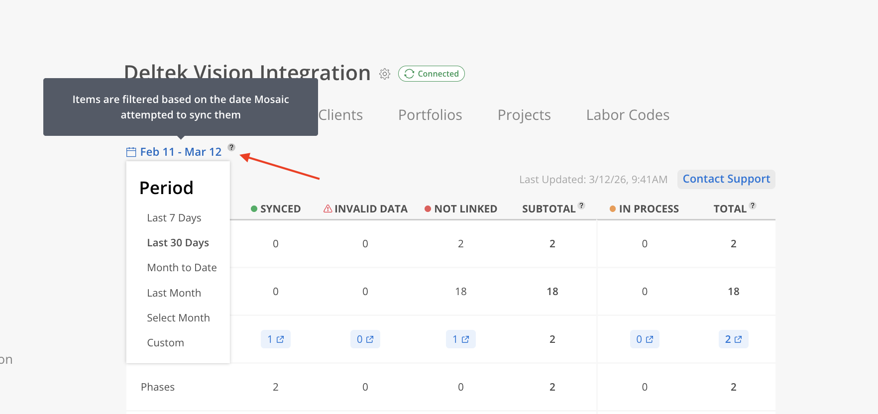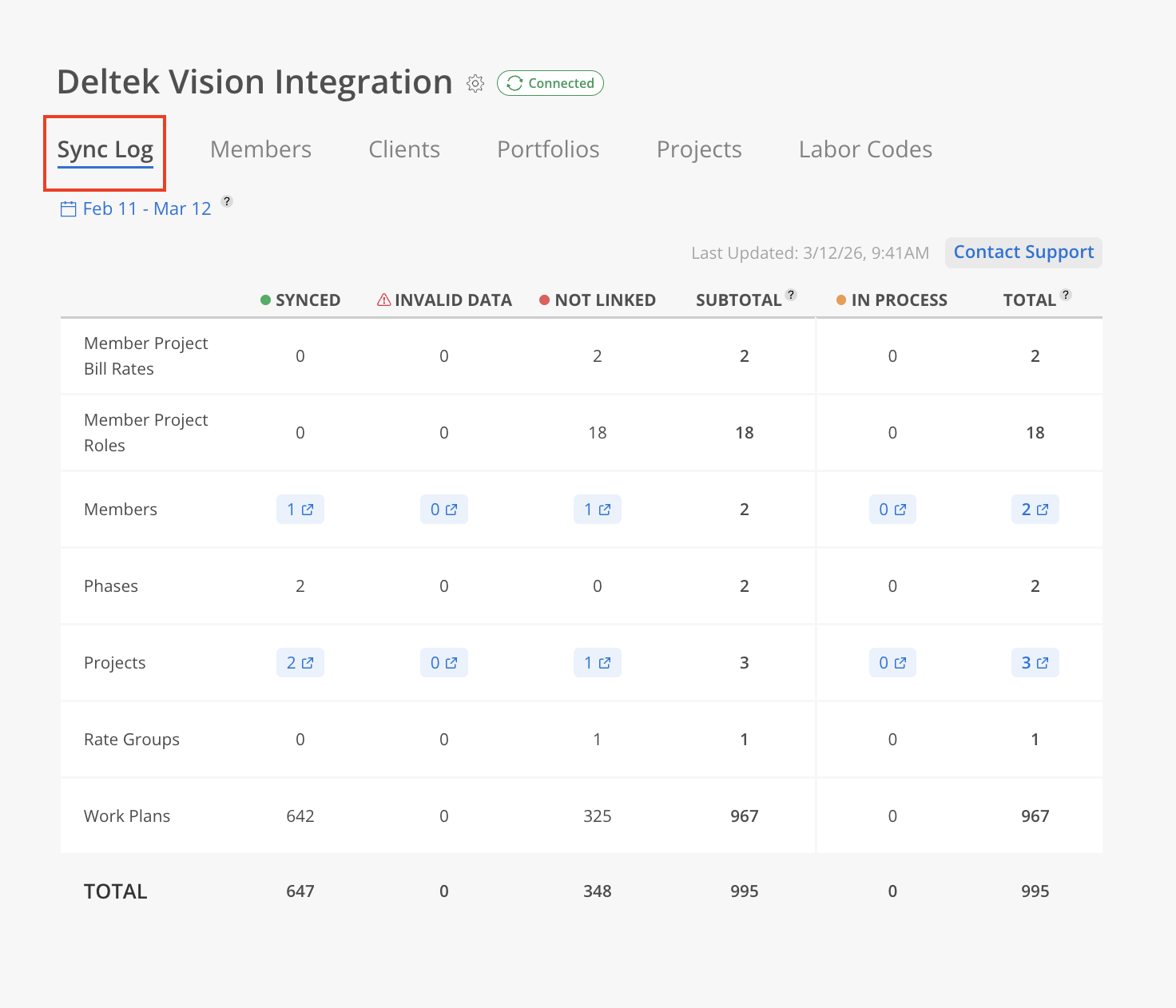 Subtotal (the combined total of Synced, Invalid Data, and Not Linked)