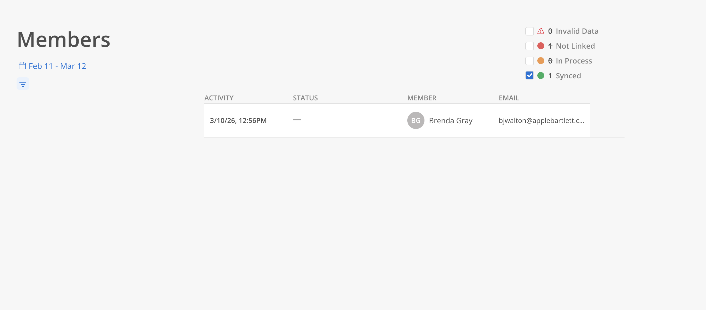 Status: The current syncing status of the Member record.