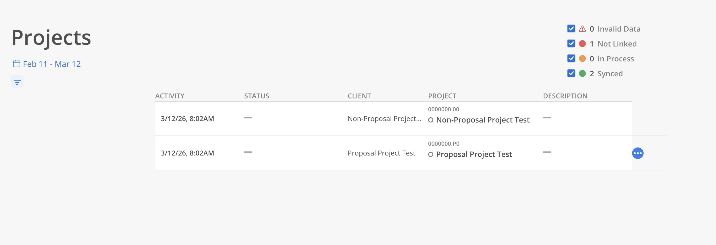 Fully Linked: Displays Projects where all Phases are linked from the integrated platform. (Note: Projects without Phases will not appear in these results.)