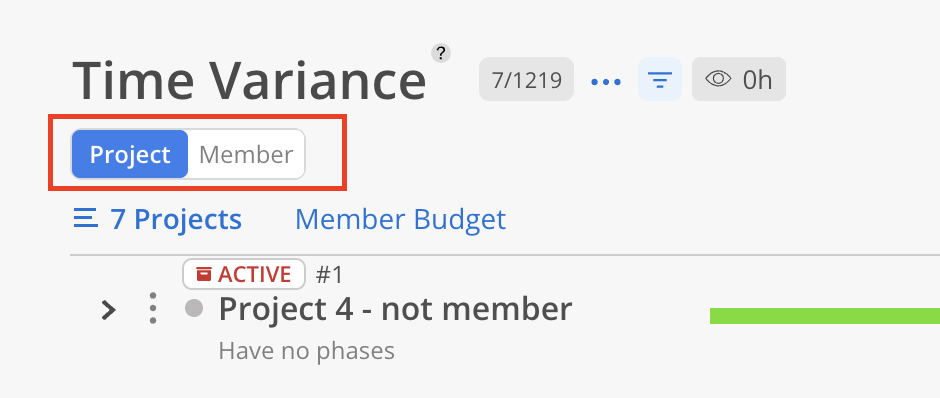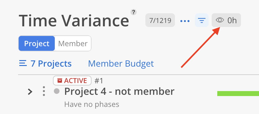 The No Variance button filters out projects or phases without variance, meaning those without planned/estimated hours or spent hours recorded.