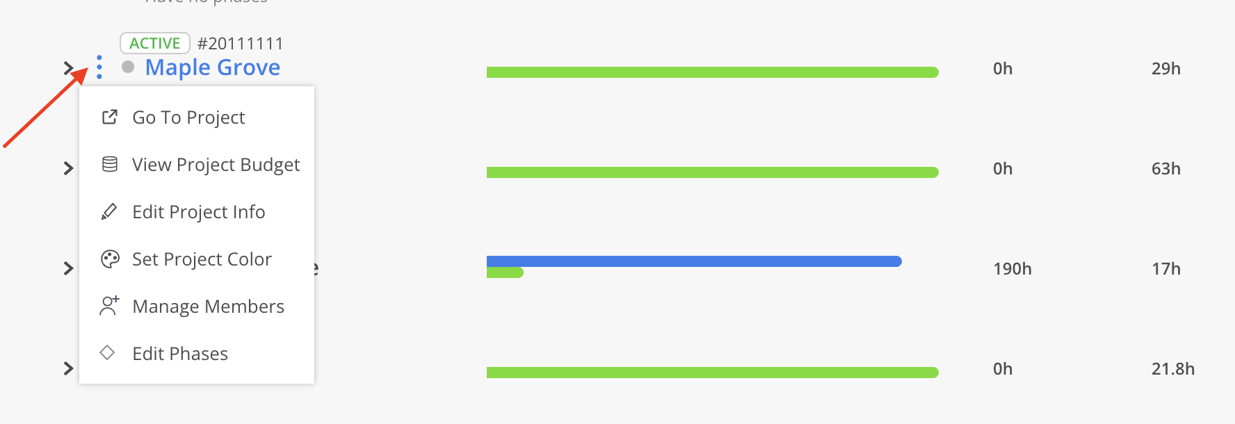 On the right hand side of project you will see a green or red percentage displaying the project's overall performance.