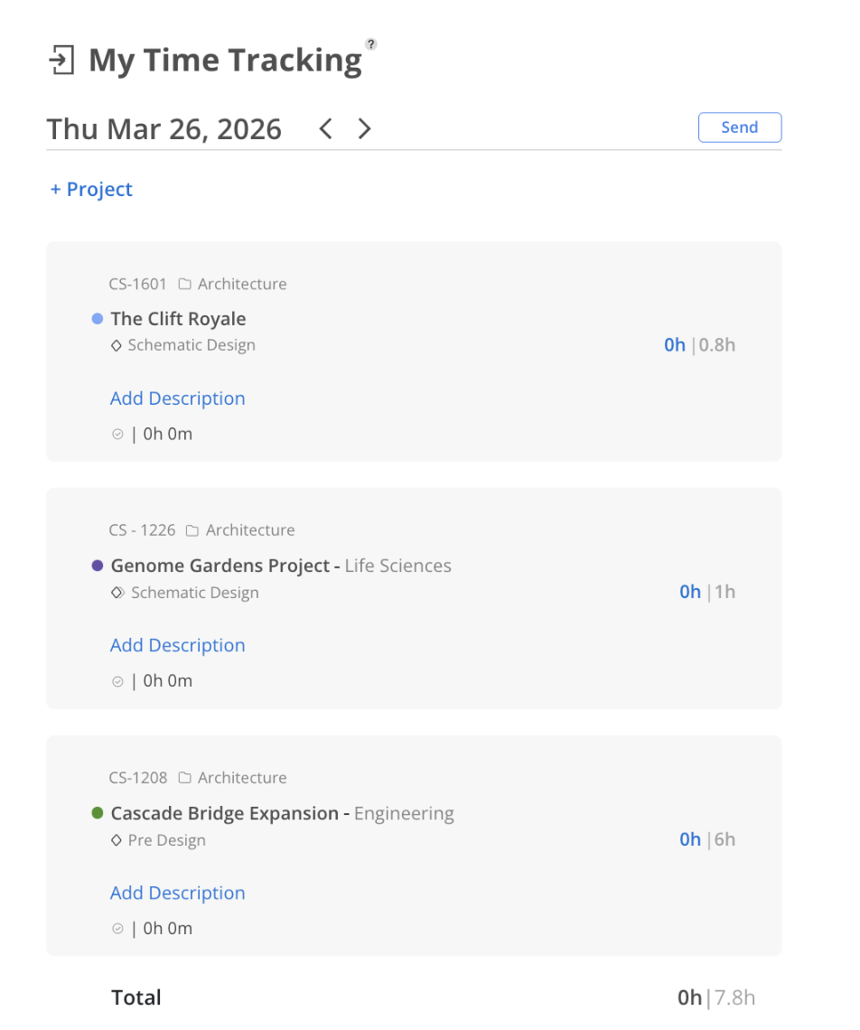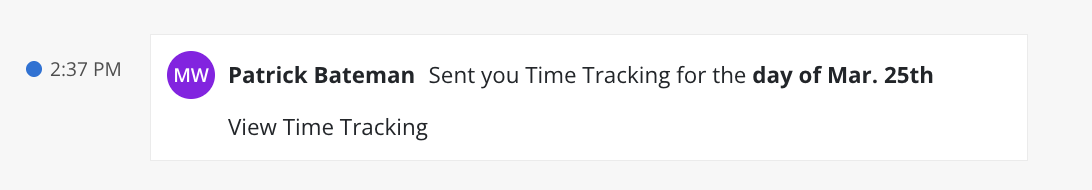 Opens a modal showing time tracked for the selected date