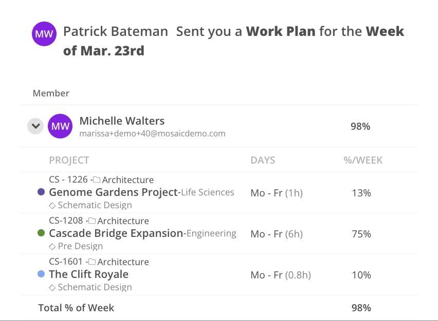 A modal will open showing the Member's total capacity and Work Plans information of the week indicated.