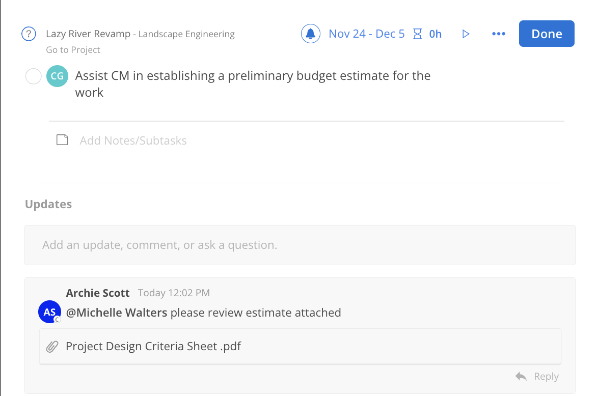 Task Modal will open to show you all details of this Task and all the comments and replies on the Task.