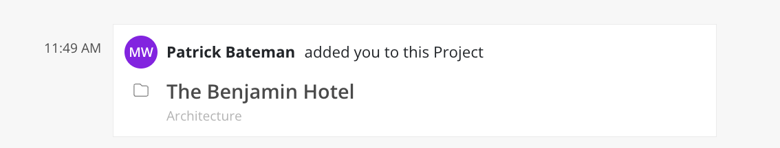 Project updates (e.g., added to a project, project archived)