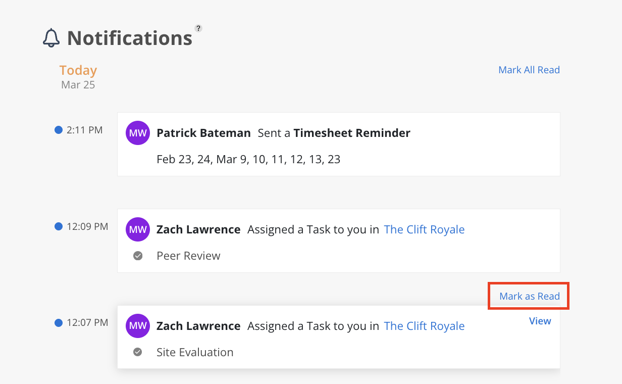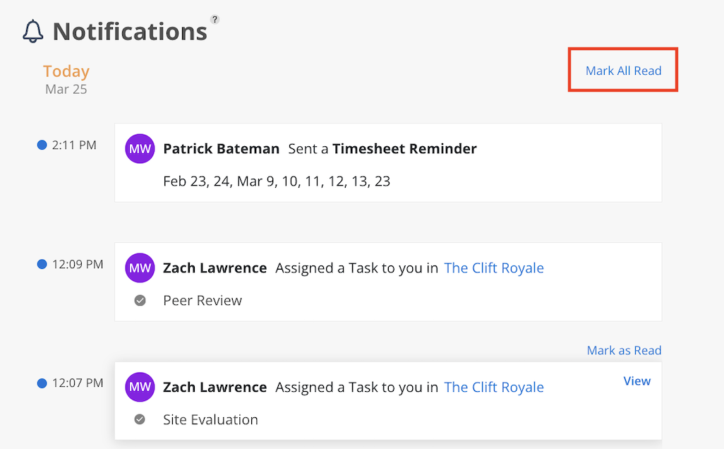 Additionally, you can choose to mark all notifications as read using the option at the top.