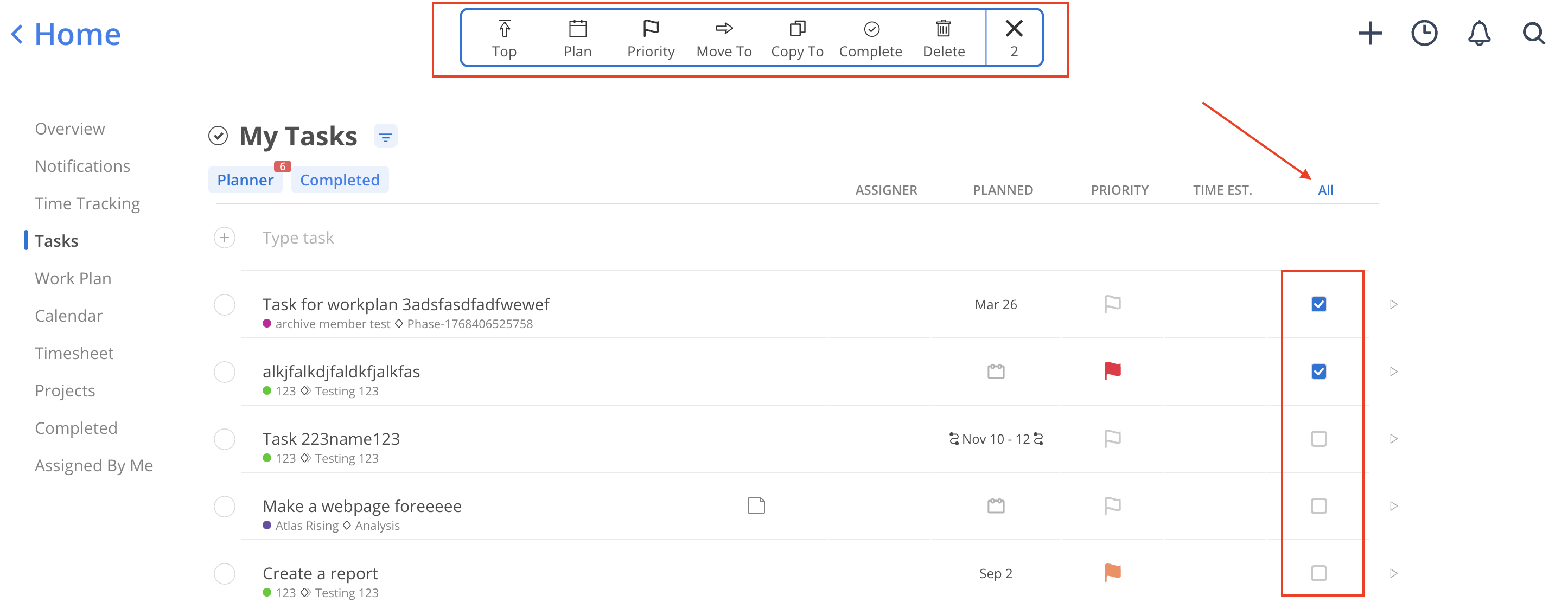 When you select one task, an All button will appear, allowing you to click on it to select all tasks simultaneously.