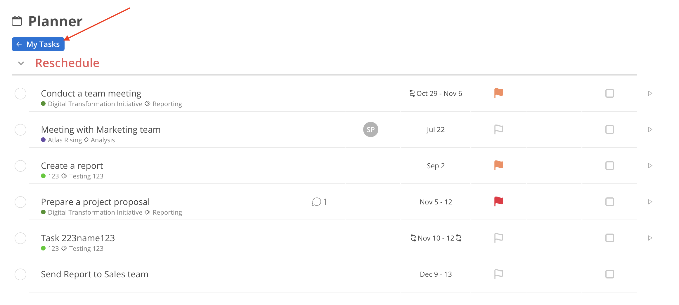 Utilize the plan date and priority attributes on Tasks to enhance your work management.