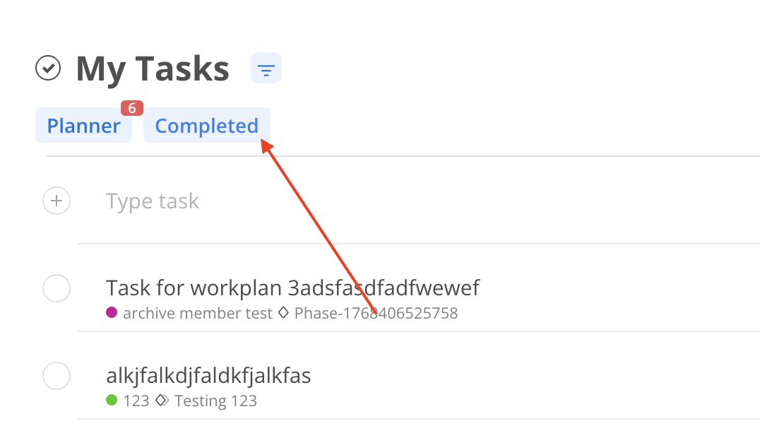 By clicking the circle on the left of the task, you can mark a task as complete.