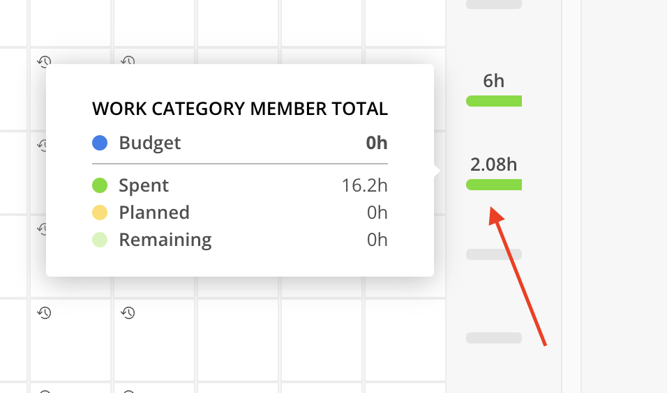Click the clock on the left-hand corner of the day to view how many hours you were scheduled to work on the project (from the Work Planner) along with any activity you performed.