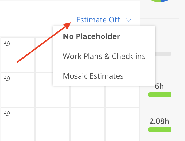 Click the estimate button to turn the estimation placeholder on or off. The estimate can be set to be based on your Work Plans and Check-ins or just Mosaic estimates.
