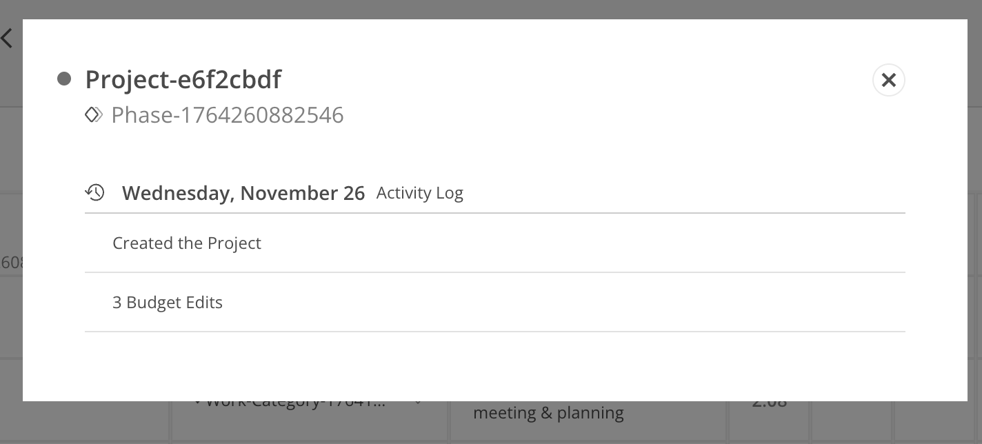 Entering a timesheet for a completed project or phase will trigger a notification. Time entry for these completed projects or phases is still permitted if necessary.