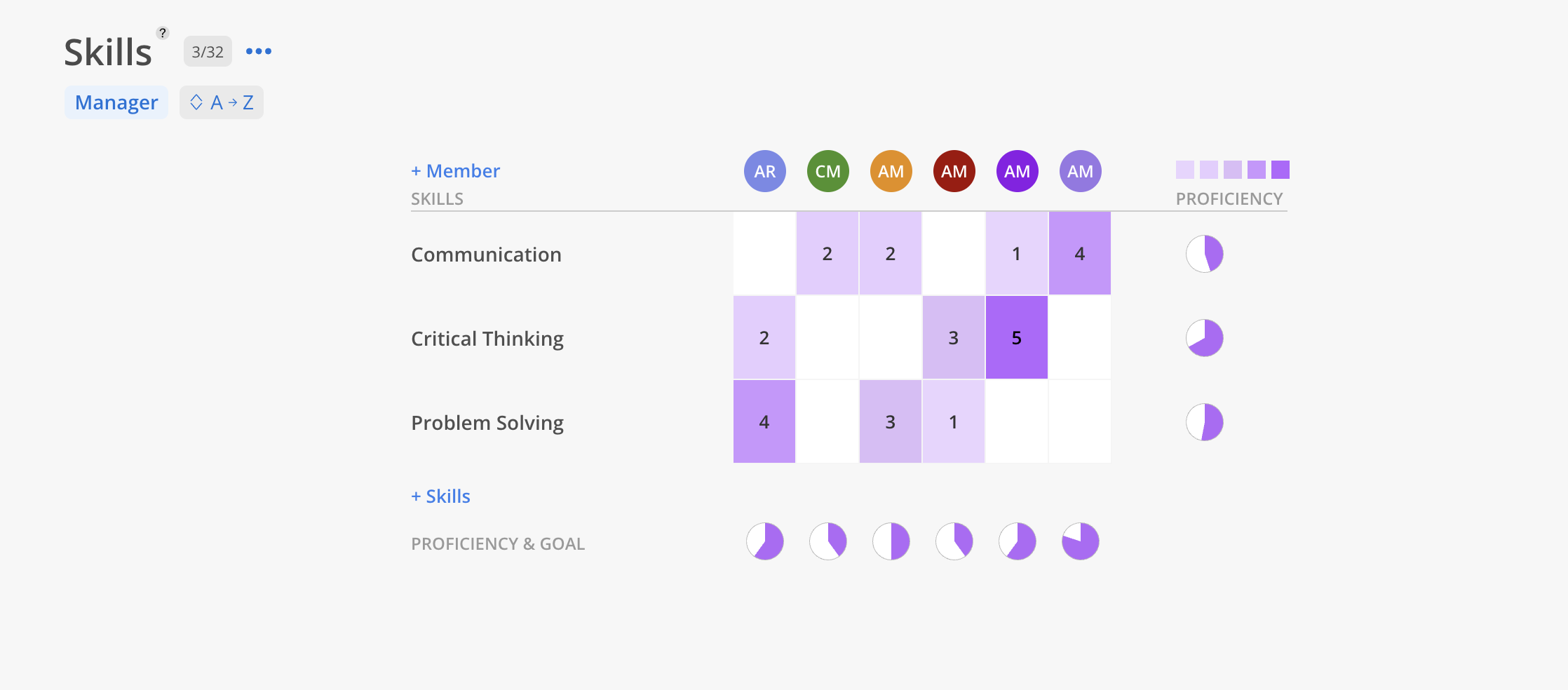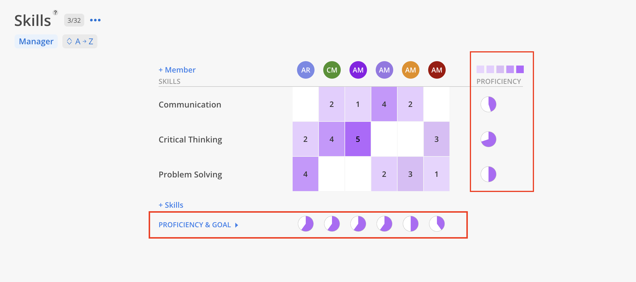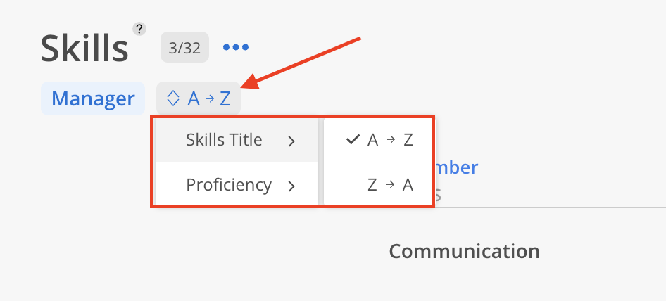 Click Proficiency on the right to sort Skills in ascending or descending order.