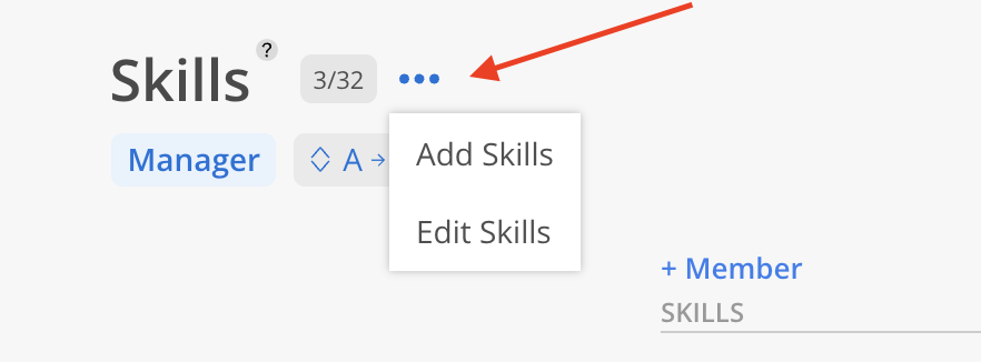 Click the three-dot on the report header. Click Add Skills or Edit Skills to go to Organization Settings > Member > Skills.
