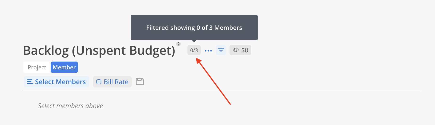 The Report can be viewed by Project or by Member, depending on the selected toggle beneath the Report title.