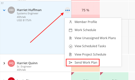 Select the three dot menu next to the members name. Select the ‘Send Work Plan’ option.