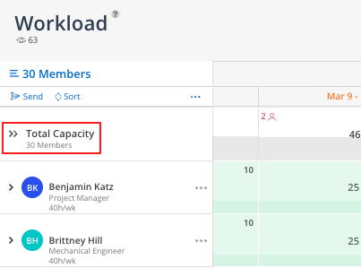 Show Timesheet Time: Toggles the display of Timesheet entries total hours for a Member on the Capacity Heatmap.