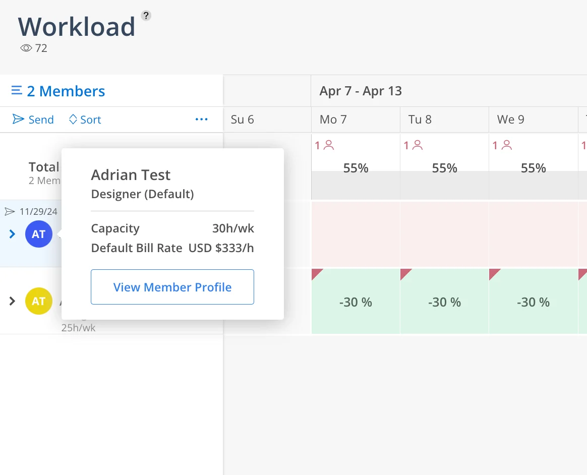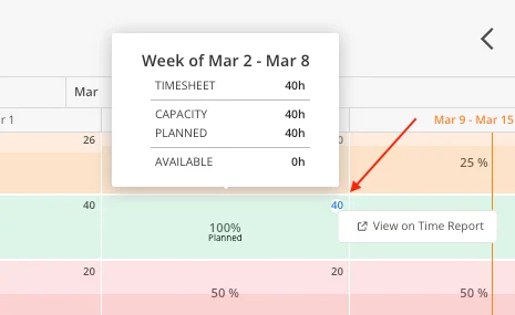 Timesheet Time — Show or hide logged timesheet hours in the top-left corner of a member's capacity cell and in the heatmap tooltip.