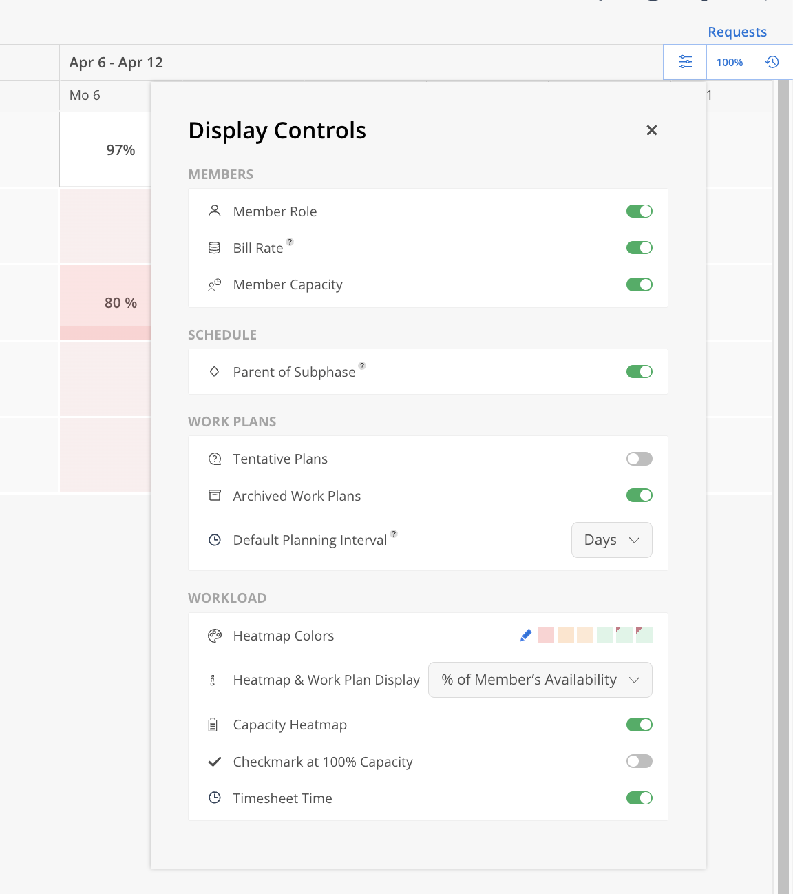 he Display Controls panel brings together all of your workload visibility and planning preferences in one place. To open it, click the Display Controls icon (sliders icon) in the top-right of the Workload space.