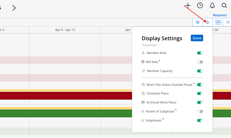 To customize your Planner Space to your specifications, you’ll want to use the Display Settings button - found in the Planner Space Controls.
