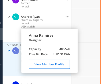 Bill Rate: Show or hide the member’s default bill rate under their name in the left-side menu. The displayed rate reflects any Rate Multiplier applied to the Project.