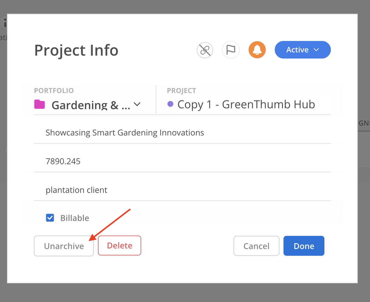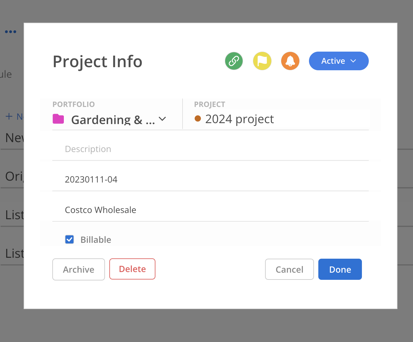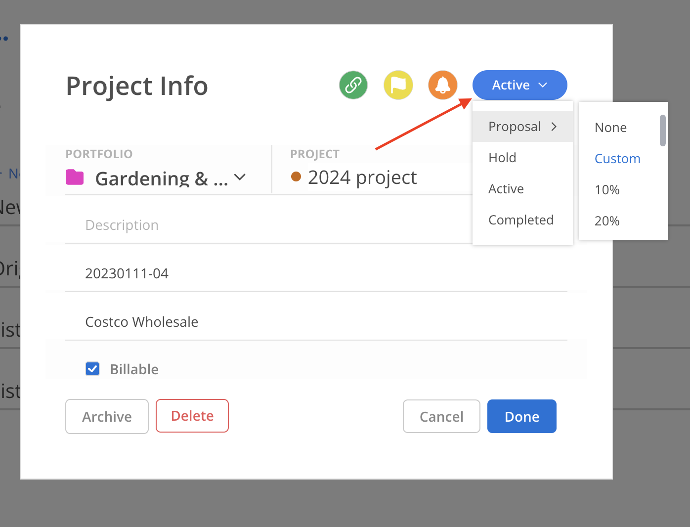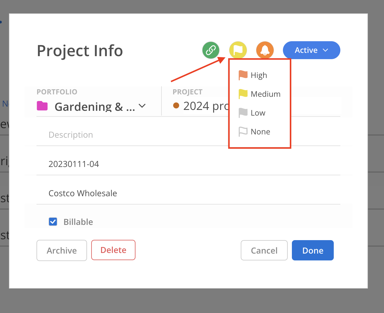 Edit the project priority by clicking the flag icon. This update will apply organization-wide and can also be used for sorting and filtering.