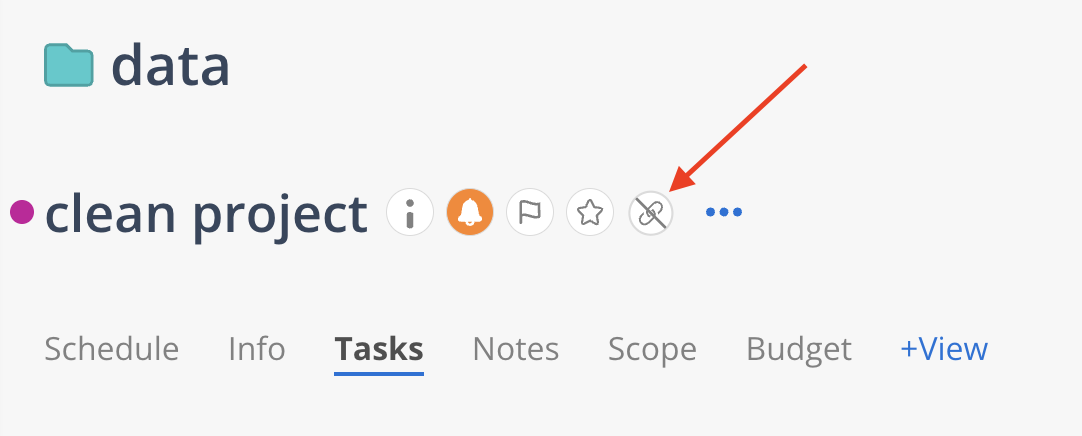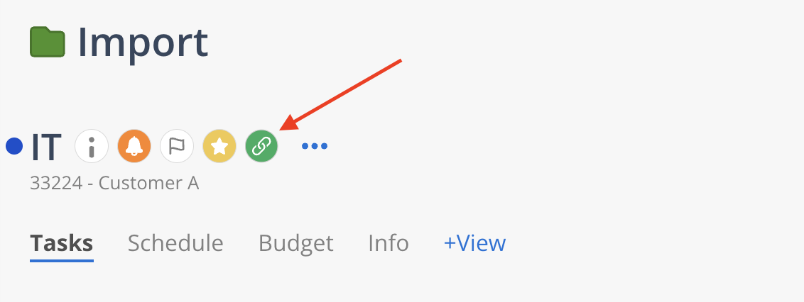 Next to the info button, you will see the Project linking icon. This icon shows if the Project is linked to an integration or not.