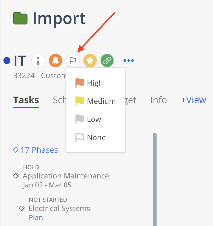 Click the flag icon to set the priority of the Project. Choose from the following priority levels: