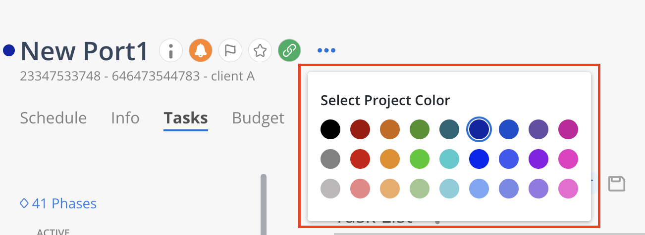 The selected Project color will update and will be applied across Work Plans, Phases, Work Category bars, Reports, and other displays.