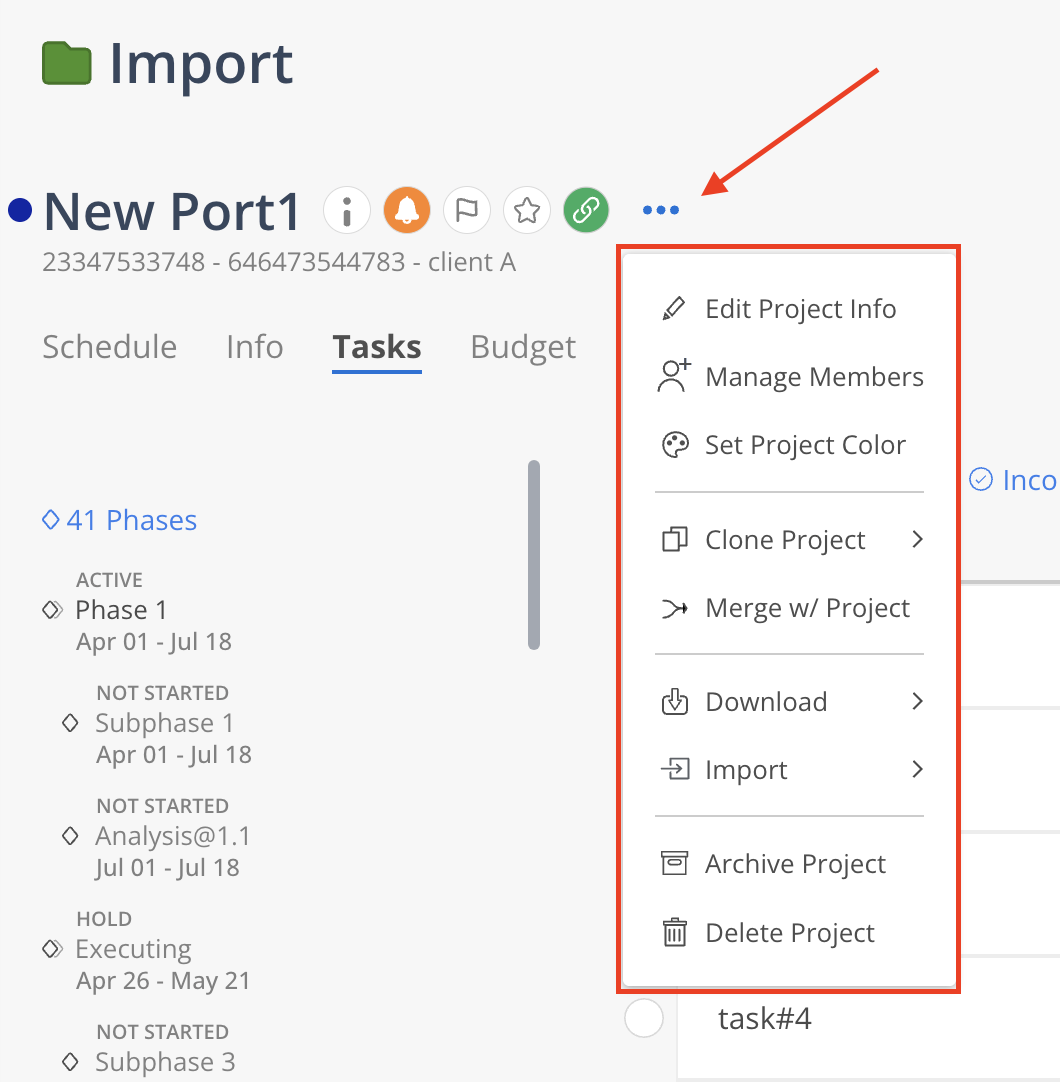 Click the three-dot on the Project, you will see a menu of actions you can perform:
