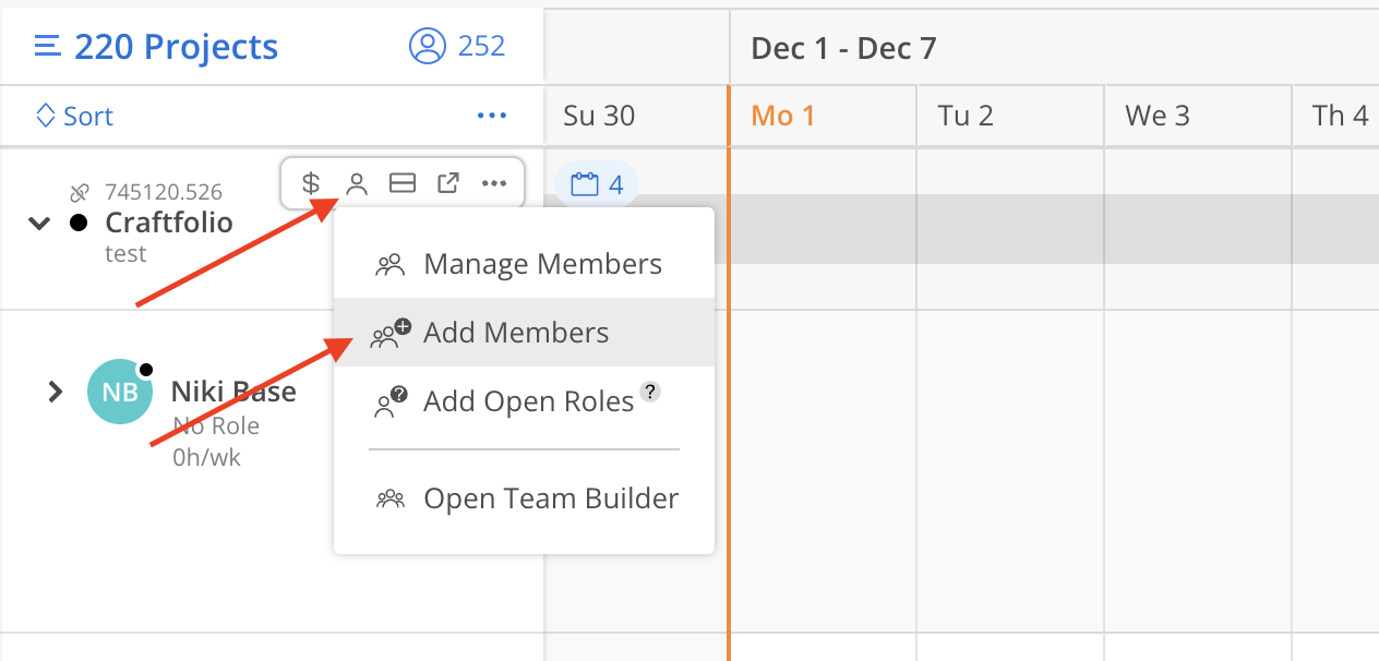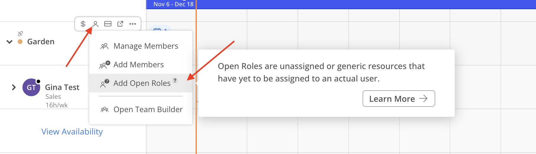 Click on the Add Member button under the Project name. Select Add Members, then Add Open Roles on the menu.