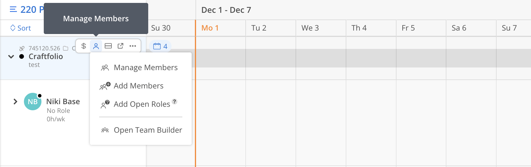 The Manage Member Modal will open, showing all the Project Members and Open Roles in this Project.