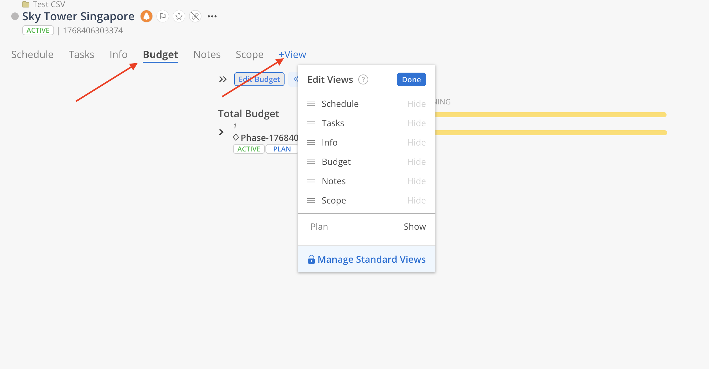 Select 'Edit Budget' to open Budget Modal.