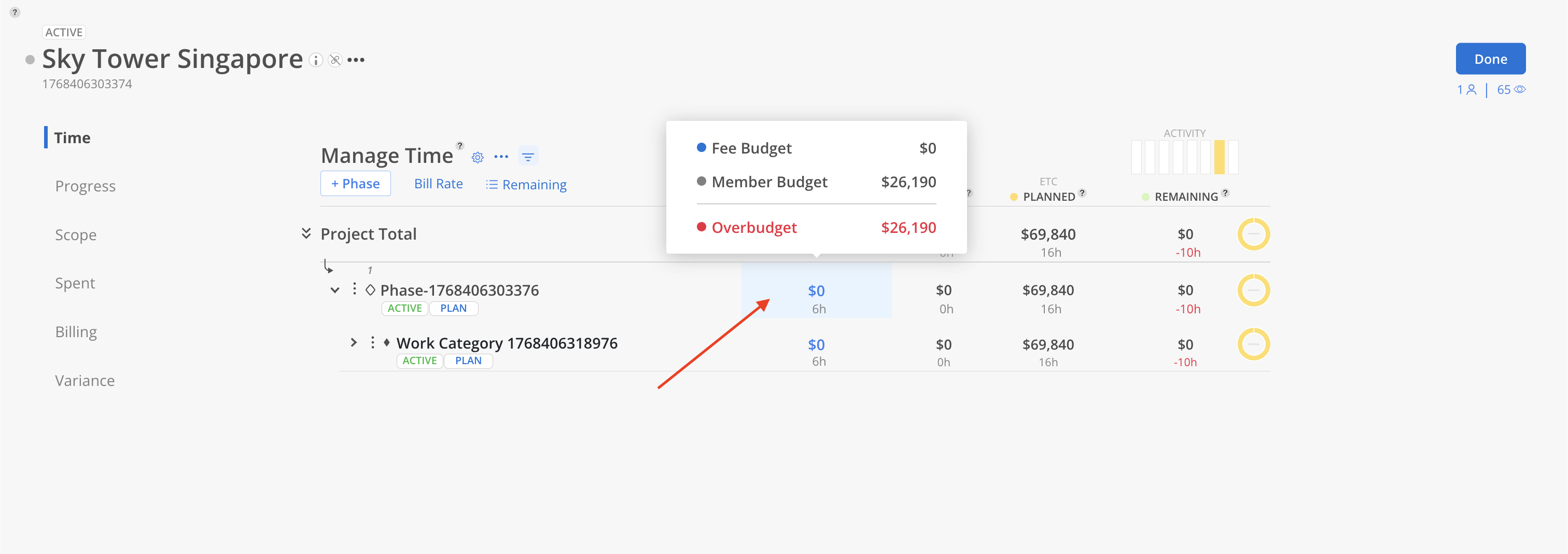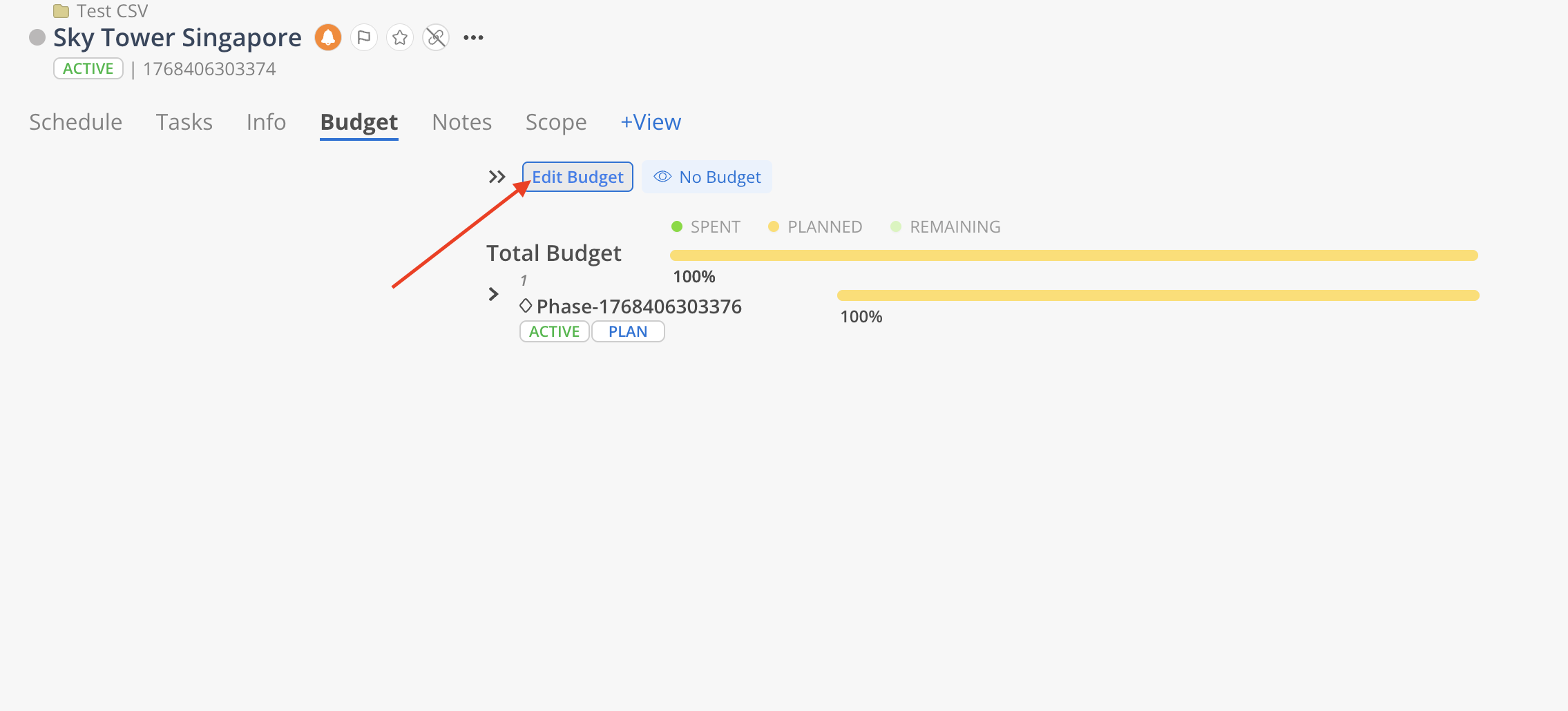 Click on the Budget cell of the phase.