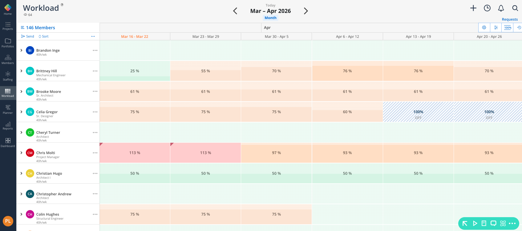 The Workload Space is Mosaics’ answer for all your Resource Management needs. Here, you’ll easily see how planned work compares to each team member’s available capacity. This view helps teams understand availability, balance assignments, and make informed staffing decisions across projects.