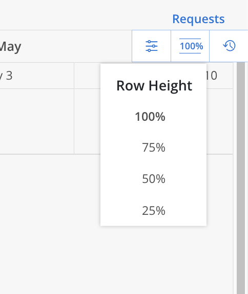 The Percentage Icon is your controls to expand or condense the Row Height of Planner: