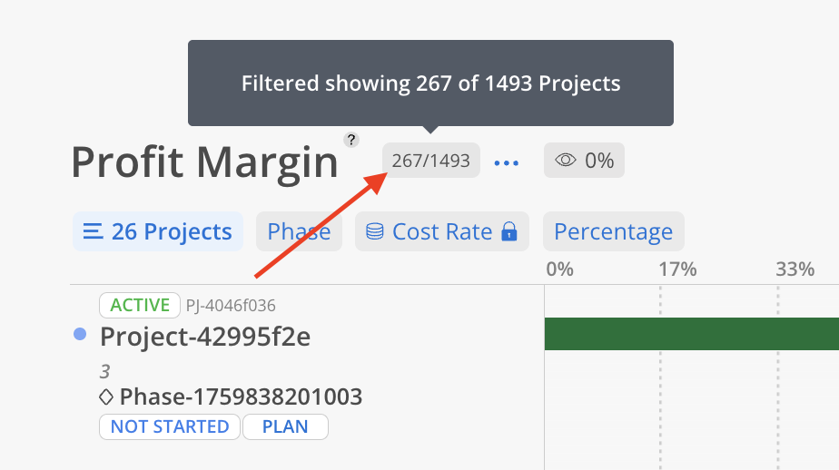 Next to the Report title, the number of filtered Projects is displayed alongside the total count.