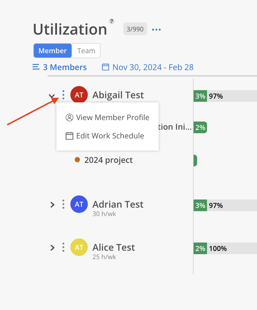 Click the three dots to View Member Profile or Edit Work Schedule.